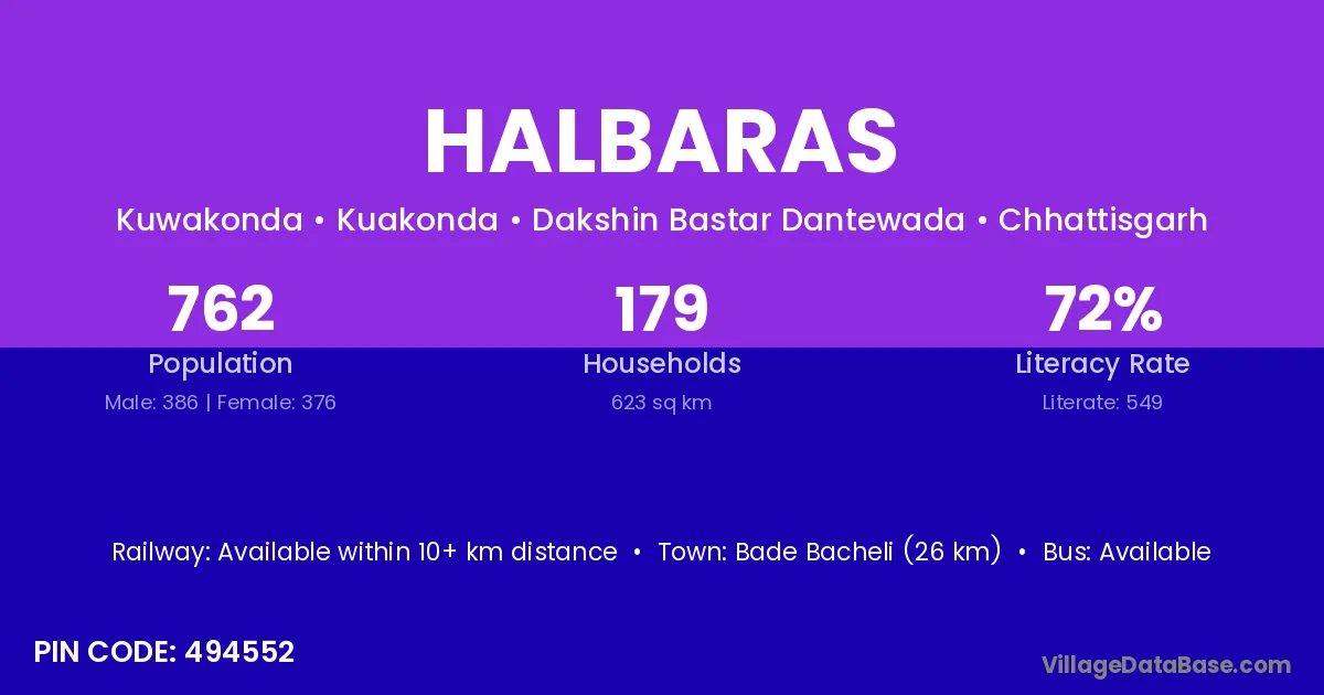 Bade Bacheli (26 km) is the nearest town to Halbaras village for major economic activities and is located approximately 26 km away.