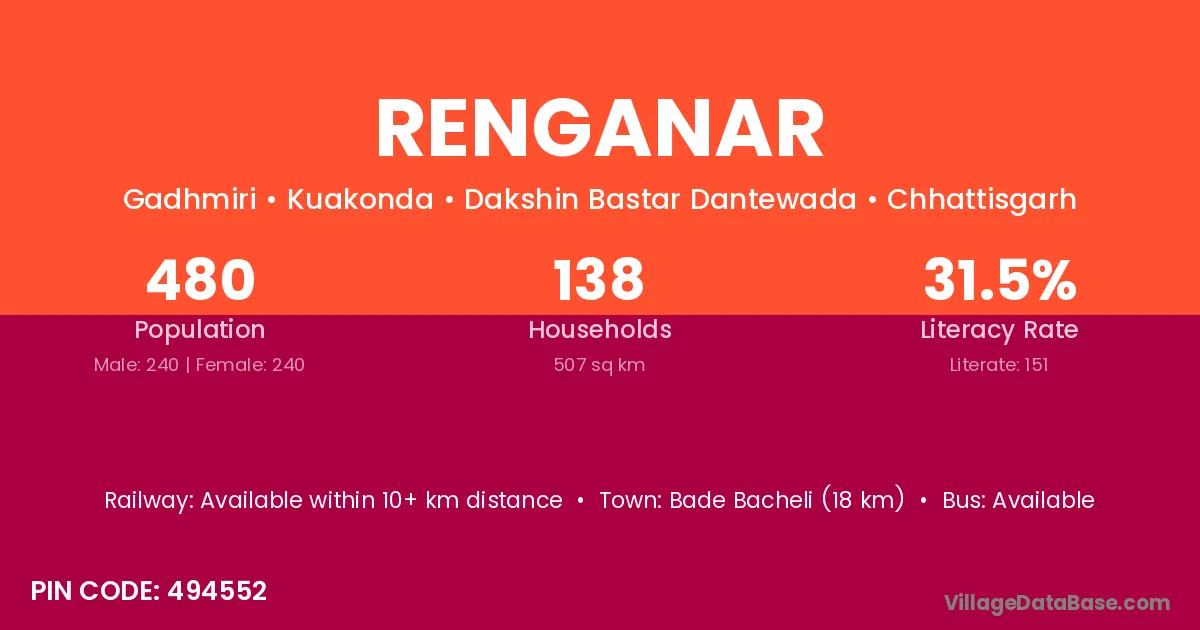 Bade Bacheli (18 km) is the nearest town to Renganar village for major economic activities and is located approximately 18 km away.