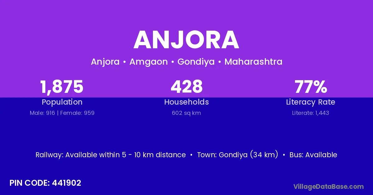 Magarlod (30 km) is the nearest town to Anjora village for major economic activities and is located approximately 30 km away.