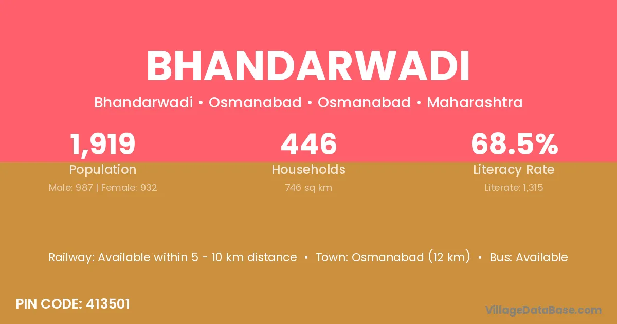 The literacy rate of Bhandarwadi village is 59.33%. Male literacy stands at 71.21% and female literacy at 48.64%.
