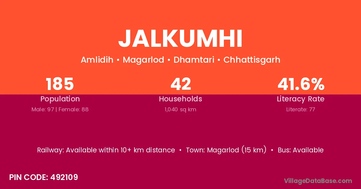 Jalkumhi village is located in the Magarlod Tehsil of the Dhamtari district in Chhattisgarh .