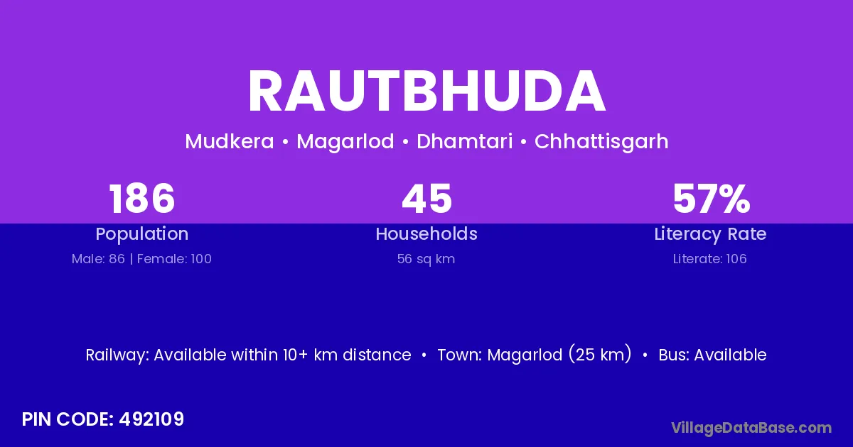 Rautbhuda village is located in the Magarlod Tehsil of the Dhamtari district in Chhattisgarh .
