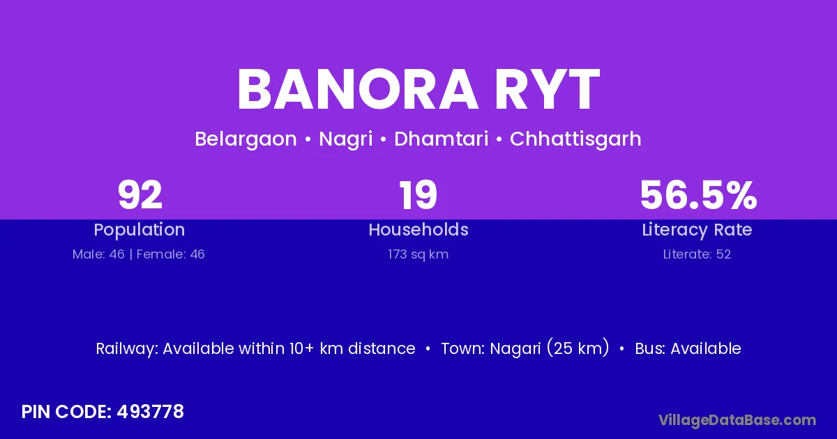 Nagari (25 km) is the nearest town to Banora Ryt village for major economic activities and is located approximately 25 km away.