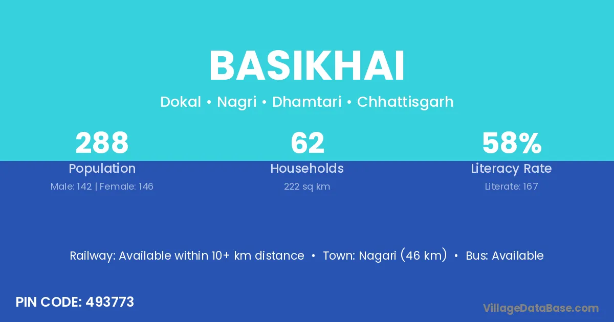 According to Census 2011 information, the village code of Basikhai village is 493773.