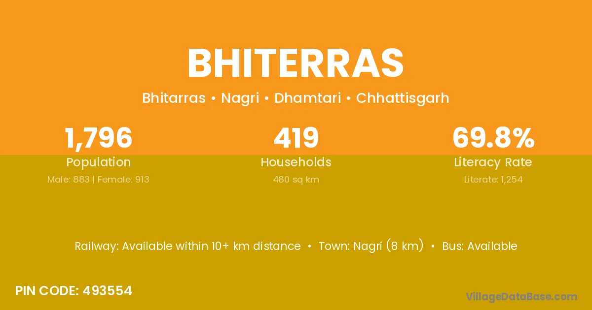 Bhiterras village is located in the Nagri Tehsil of the Dhamtari district in Chhattisgarh .