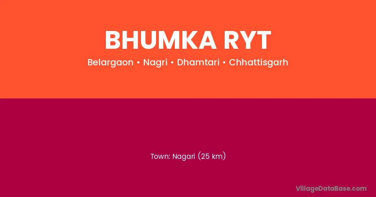 Nagari (25 km) is the nearest town to Bhumka Ryt village for major economic activities and is located approximately 25 km away.