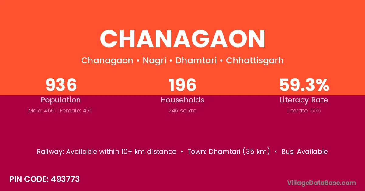Dhamtari (35 km) is the nearest town to Chanagaon village for major economic activities and is located approximately 35 km away.