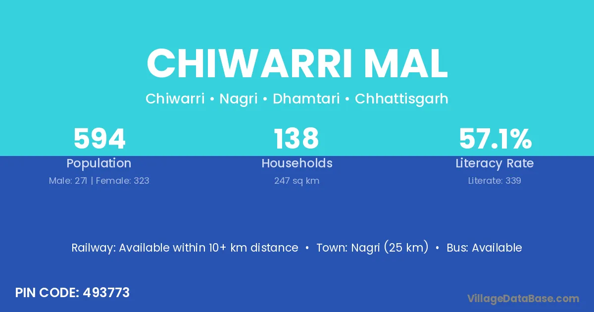 Chiwarri Mal village is located in the Nagri Tehsil of the Dhamtari district in Chhattisgarh .