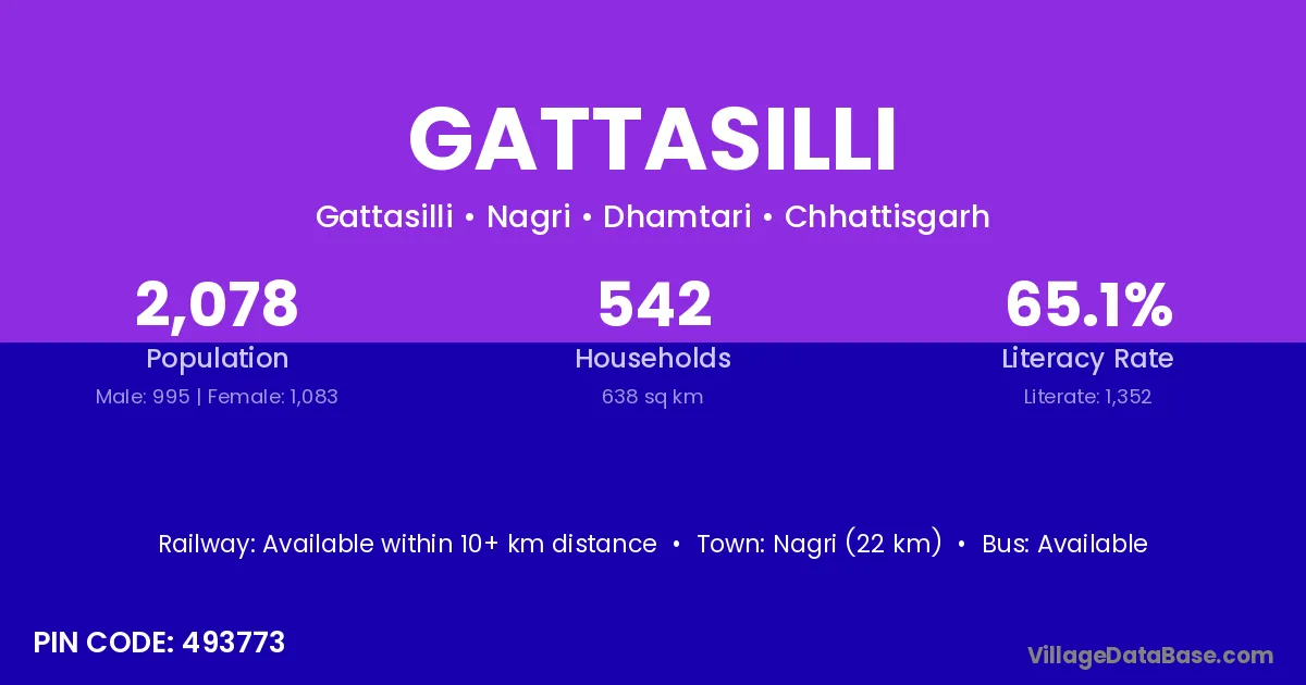Nagri (22 km) is the nearest town to Gattasilli village for major economic activities and is located approximately 22 km away.