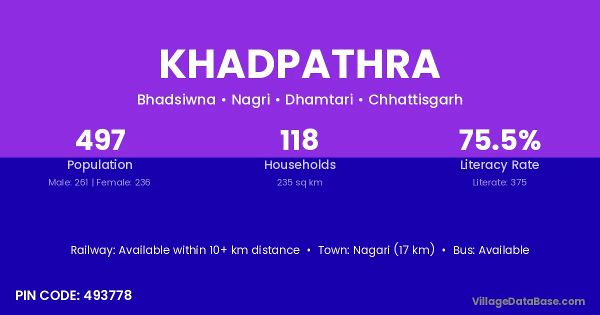 According to Census 2011 information, the village code of Khadpathra village is 493778.