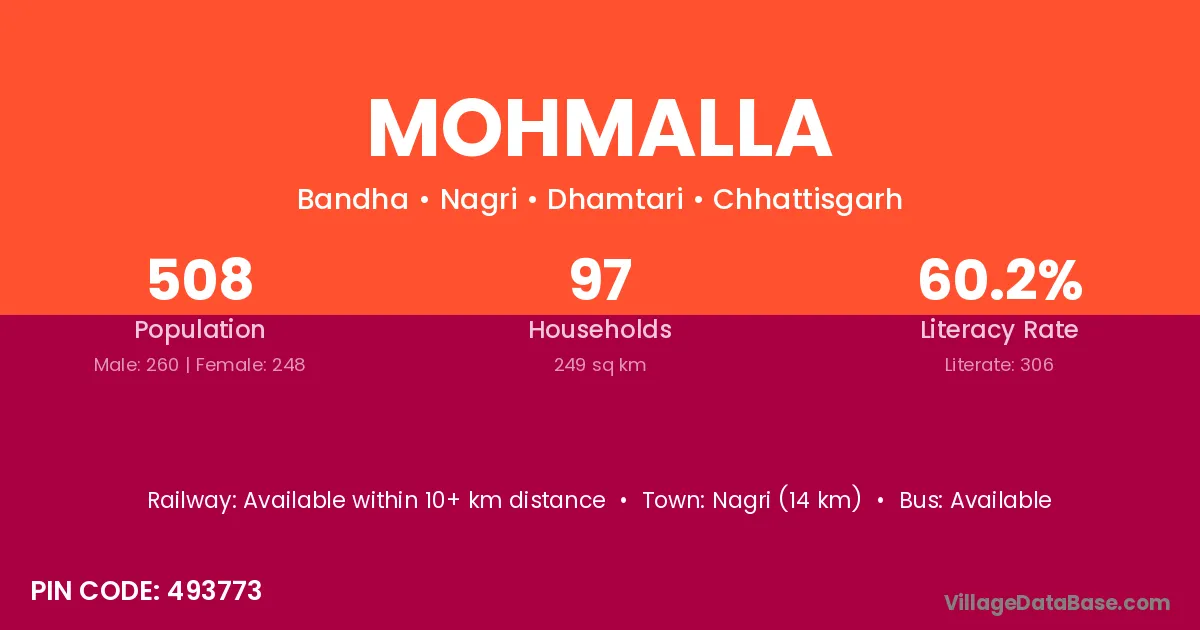 Mohmalla village is located in the Nagri Tehsil of the Dhamtari district in Chhattisgarh .