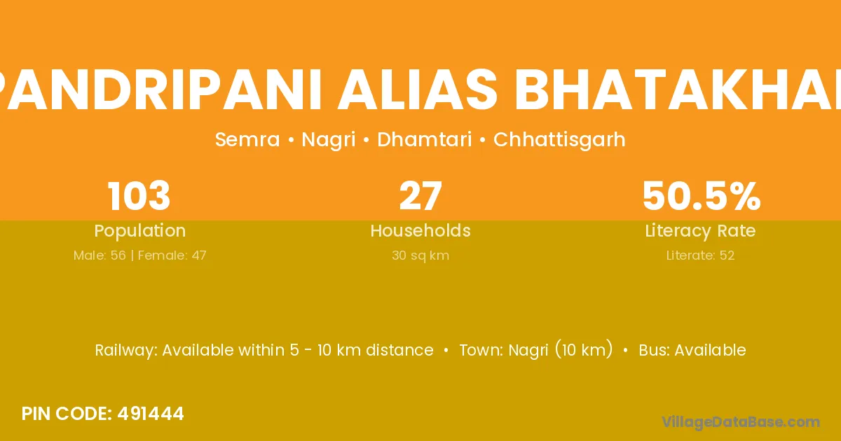 Pandripani Alias Bhatakhar village has a total population of 103 people, of which 56 are males and 47 are females.