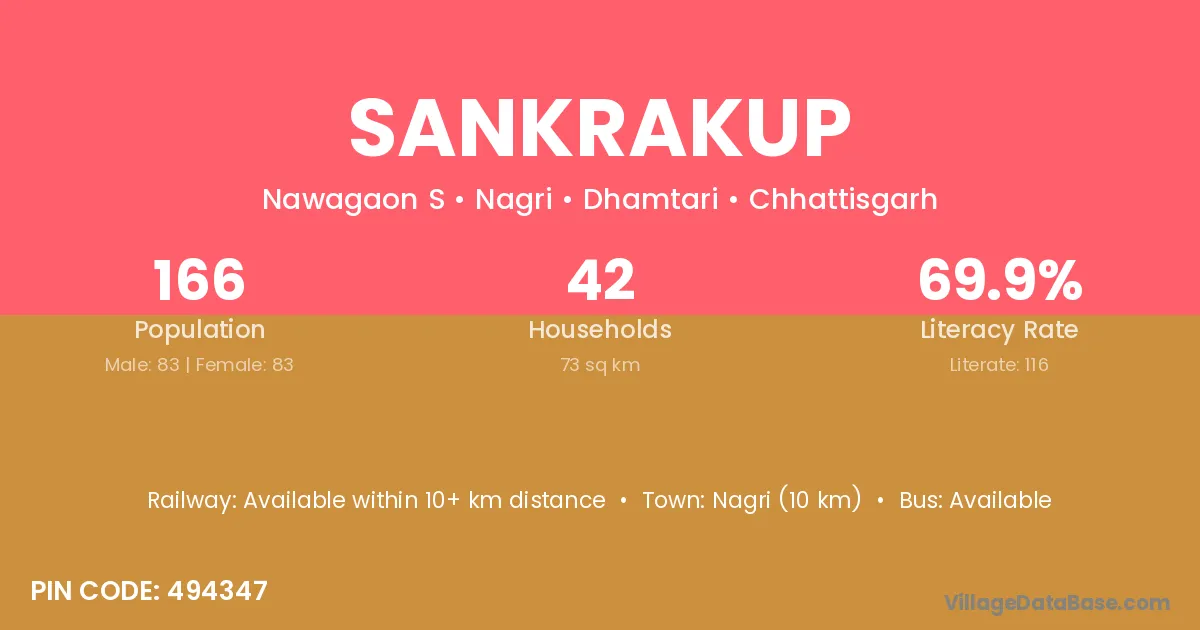 Sankrakup village is located in the Nagri Tehsil of the Dhamtari district in Chhattisgarh .