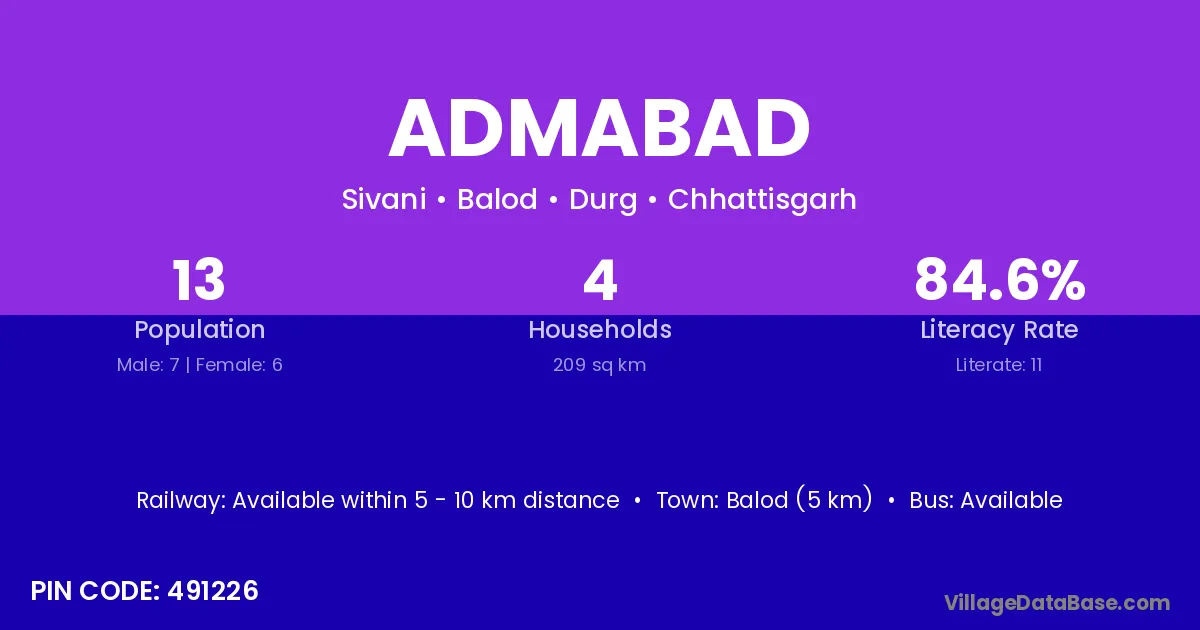 Balod (5 km) is the nearest town to Admabad village for major economic activities and is located approximately 5 km away.