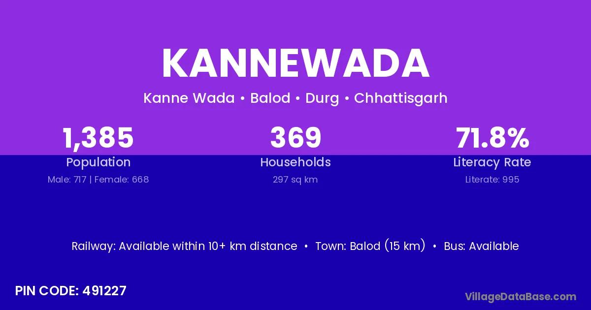 Balod (15 km) is the nearest town to Kannewada village for major economic activities and is located approximately 15 km away.