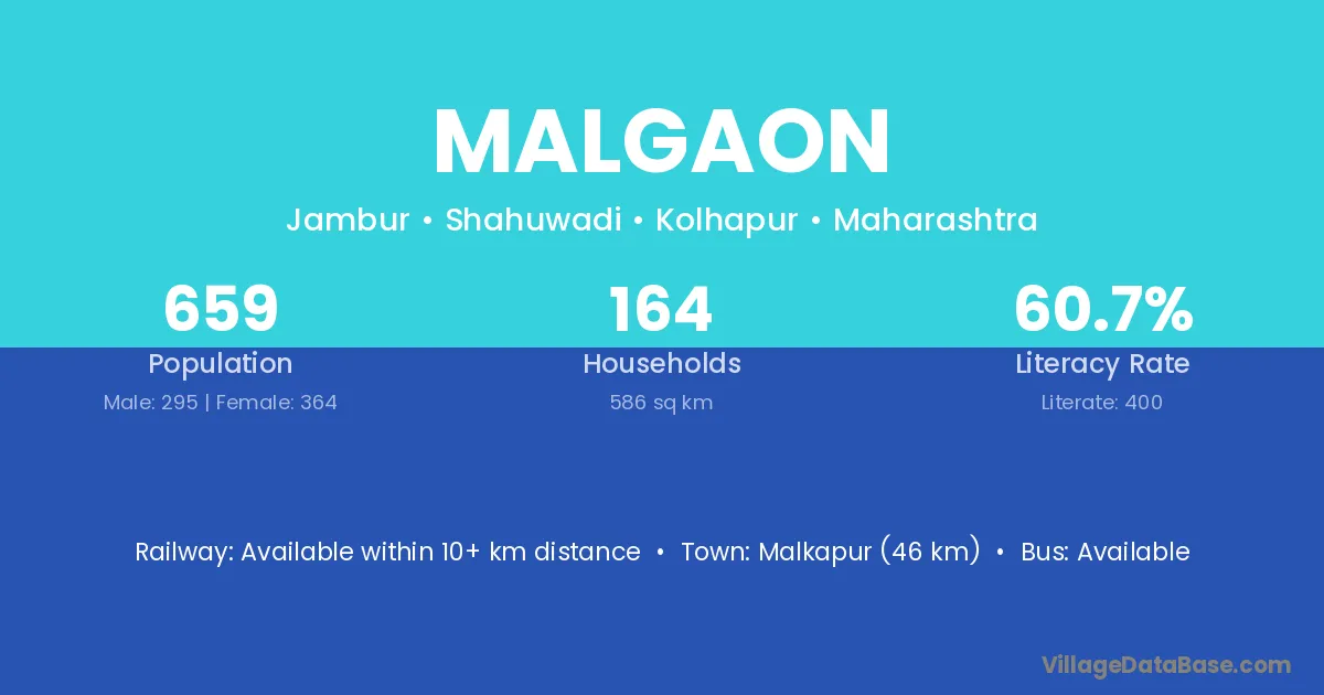 There are approximately 197 households in Malgaon village.