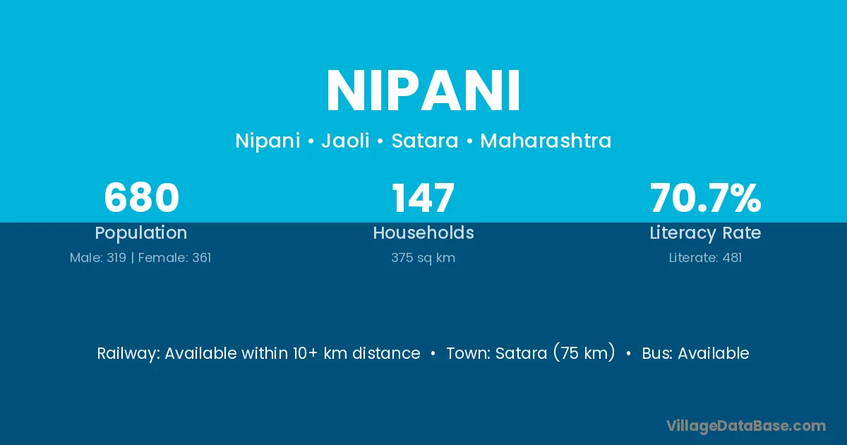 Balod (18 km) is the nearest town to Nipani village for major economic activities and is located approximately 18 km away.
