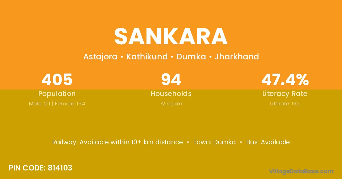 Balod (13 km) is the nearest town to Sankara village for major economic activities and is located approximately 13 km away.