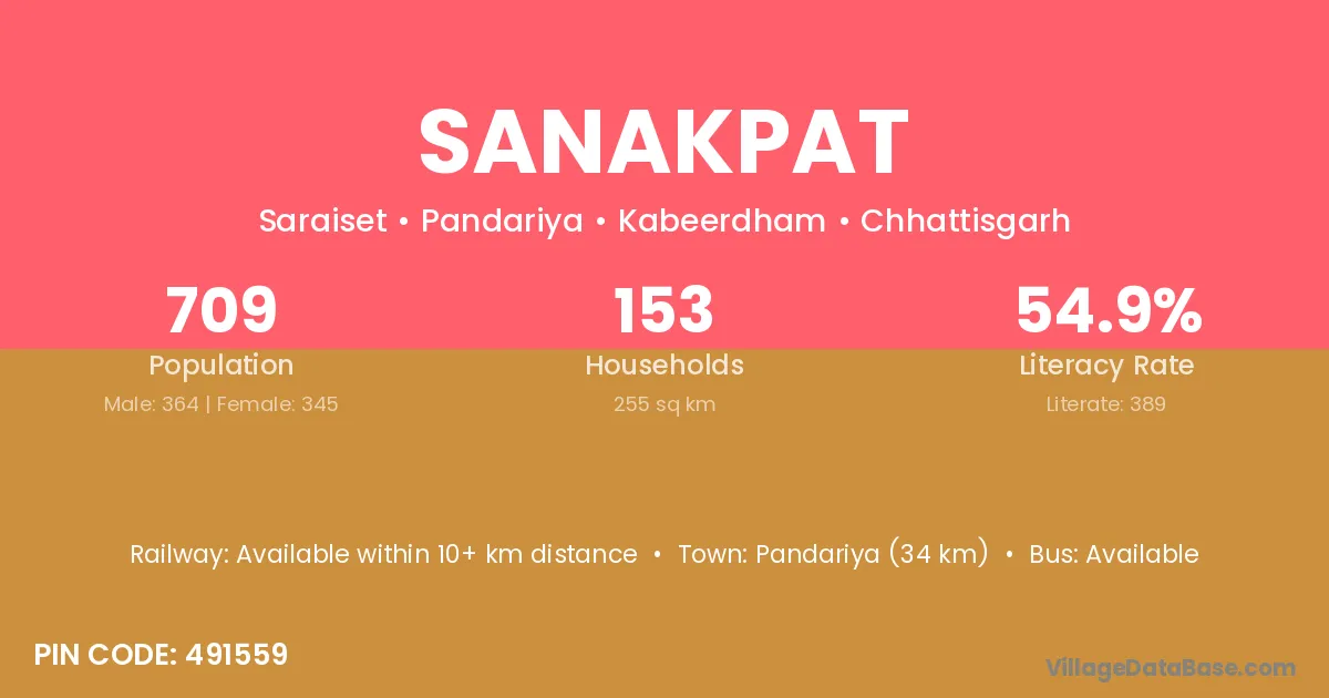 Bemetara (13 km) is the nearest town to Sanakpat village for major economic activities and is located approximately 13 km away.
