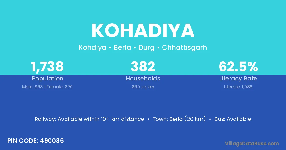 Berla (20 km) is the nearest town to Kohadiya village for major economic activities and is located approximately 20 km away.