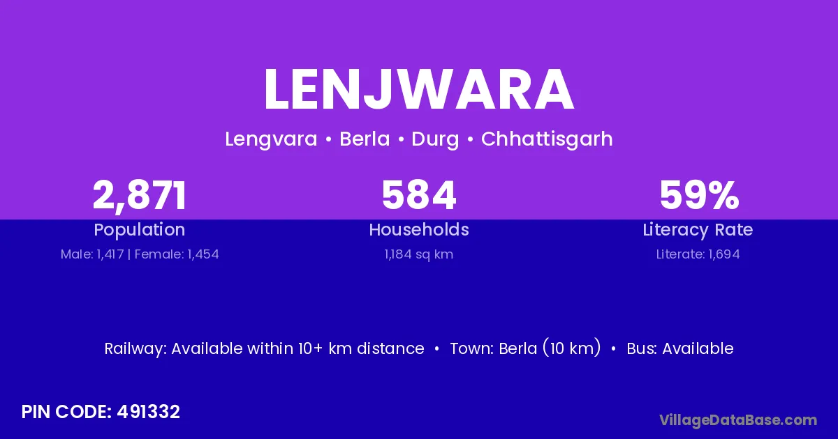 Berla (10 km) is the nearest town to Lenjwara village for major economic activities and is located approximately 10 km away.