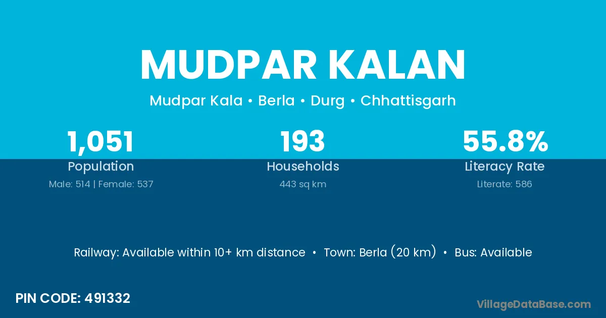 Mudpar Kalan village is located in the Berla Tehsil of the Durg district in Chhattisgarh .