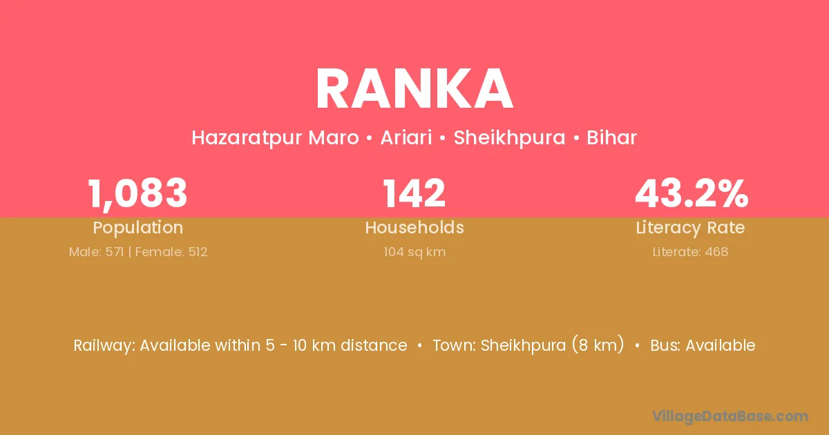 Simga (8 km) is the nearest town to Ranka village for major economic activities and is located approximately 8 km away.