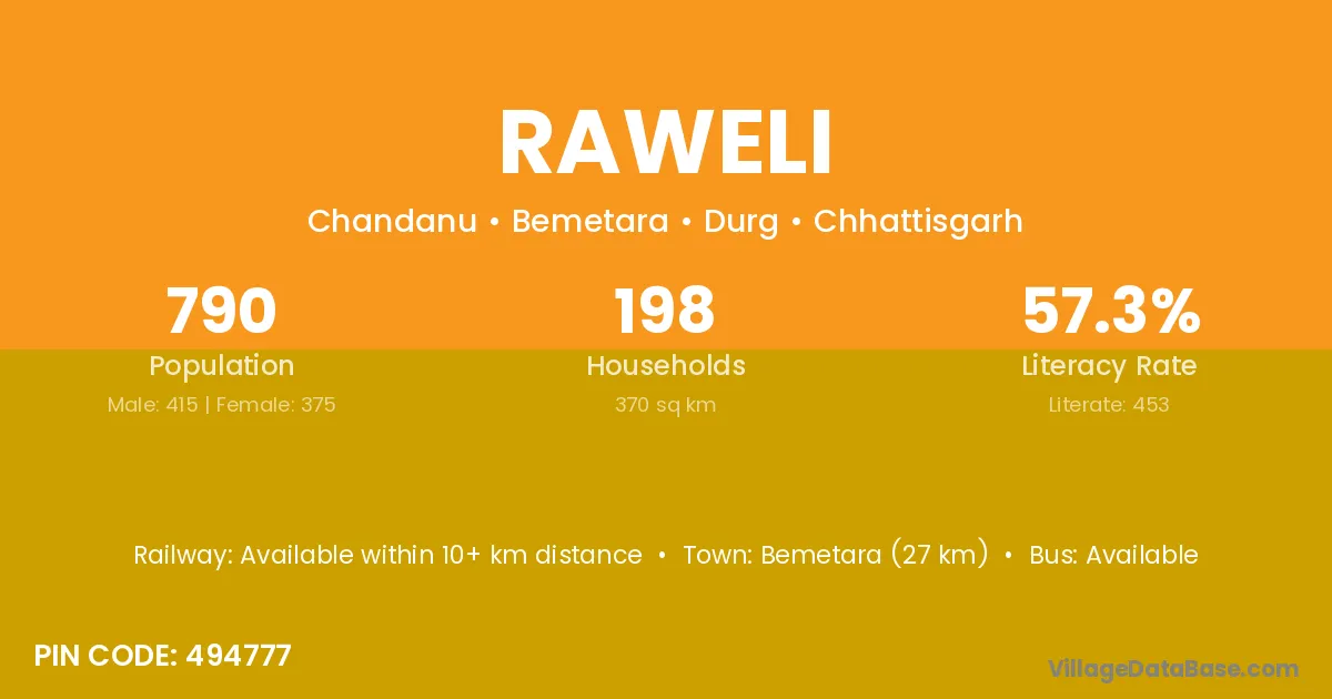 Simga (7 km) is the nearest town to Raweli village for major economic activities and is located approximately 7 km away.