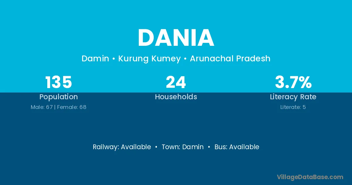 The literacy rate of Dania village is 60.12%. Male literacy stands at 68.71% and female literacy at 51.60%.