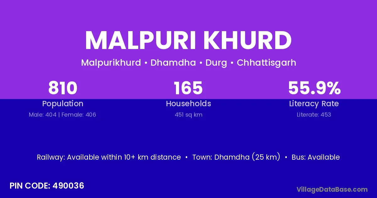 Dhamdha (25 km) is the nearest town to Malpuri Khurd village for major economic activities and is located approximately 25 km away.