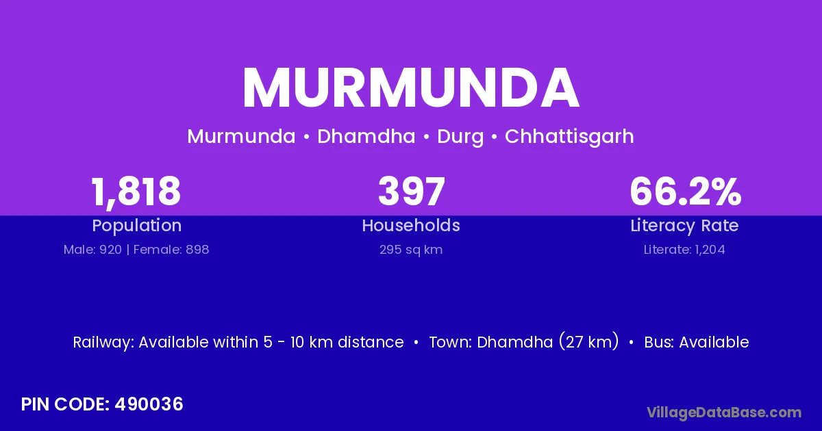Murmunda village is located in the Dhamdha Tehsil of the Durg district in Chhattisgarh .