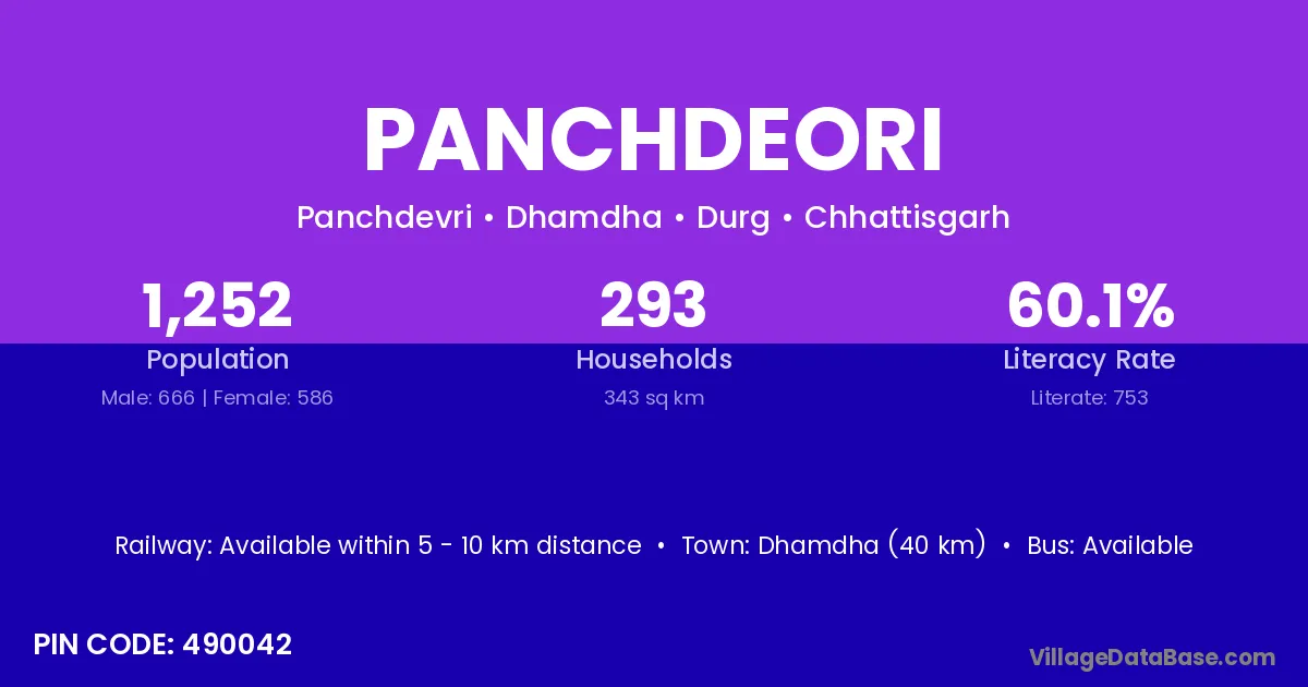 Dhamdha (40 km) is the nearest town to Panchdeori village for major economic activities and is located approximately 40 km away.