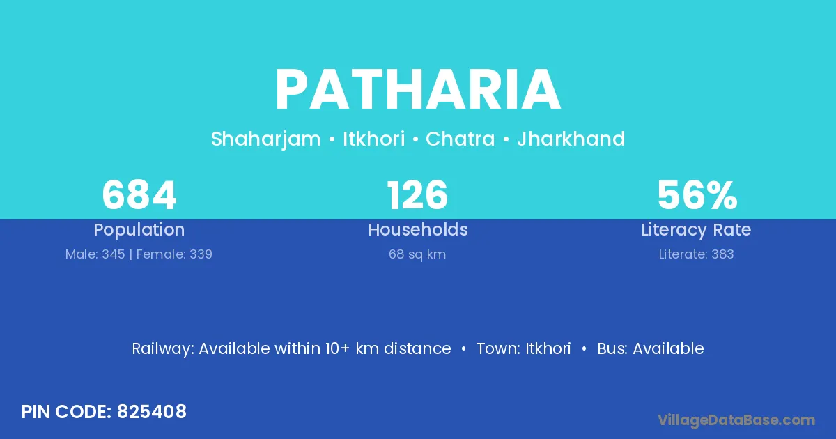 Dhamdha (27 km) is the nearest town to Patharia village for major economic activities and is located approximately 27 km away.