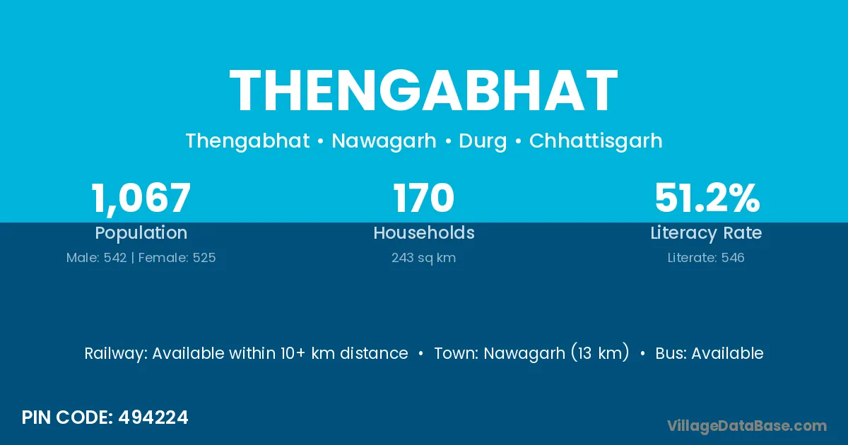 Dhamdha (17 km) is the nearest town to Thengabhat village for major economic activities and is located approximately 17 km away.