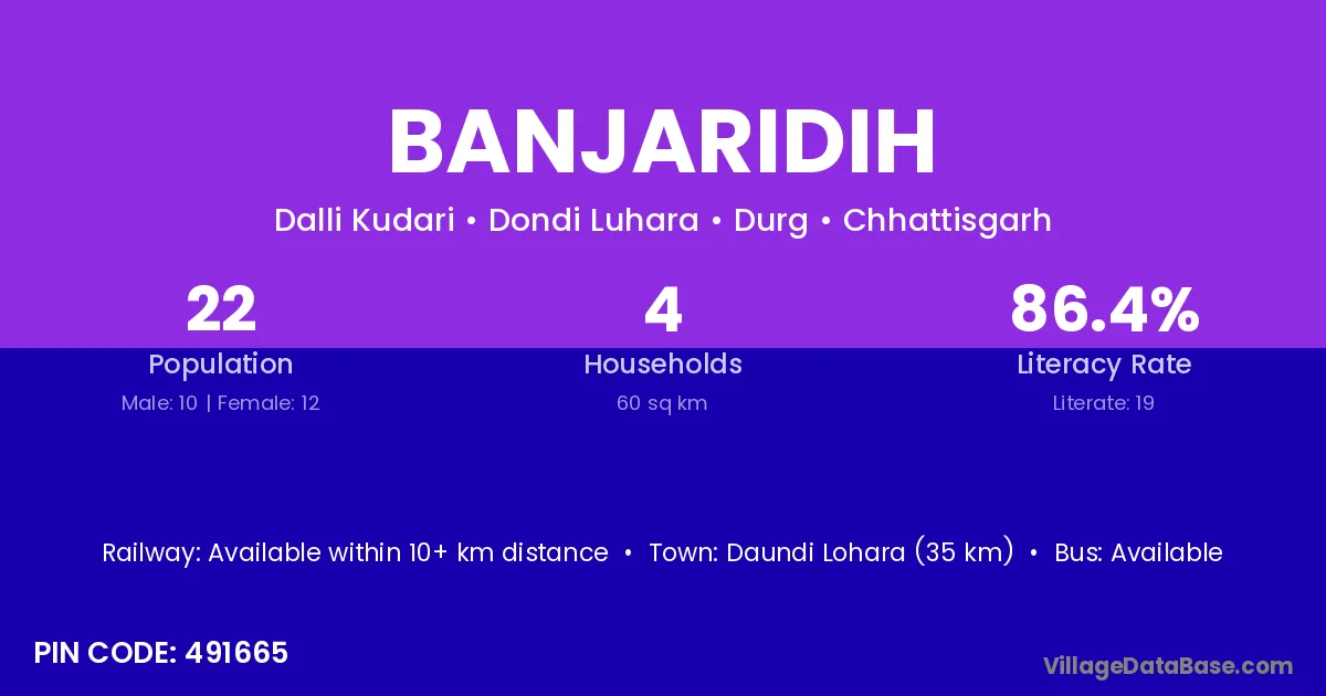 Banjaridih village is located in the Dondi Luhara Tehsil of the Durg district in Chhattisgarh .