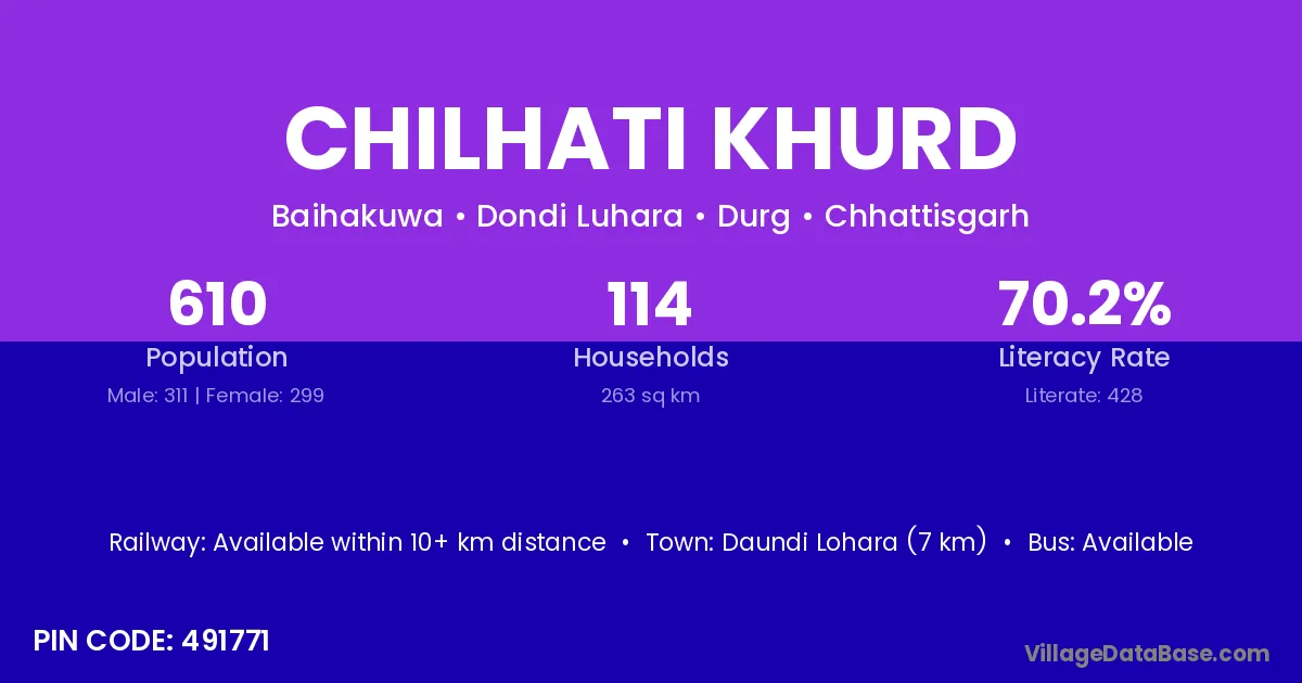 Chilhati Khurd village has a total population of 610 people, of which 311 are males and 299 are females.