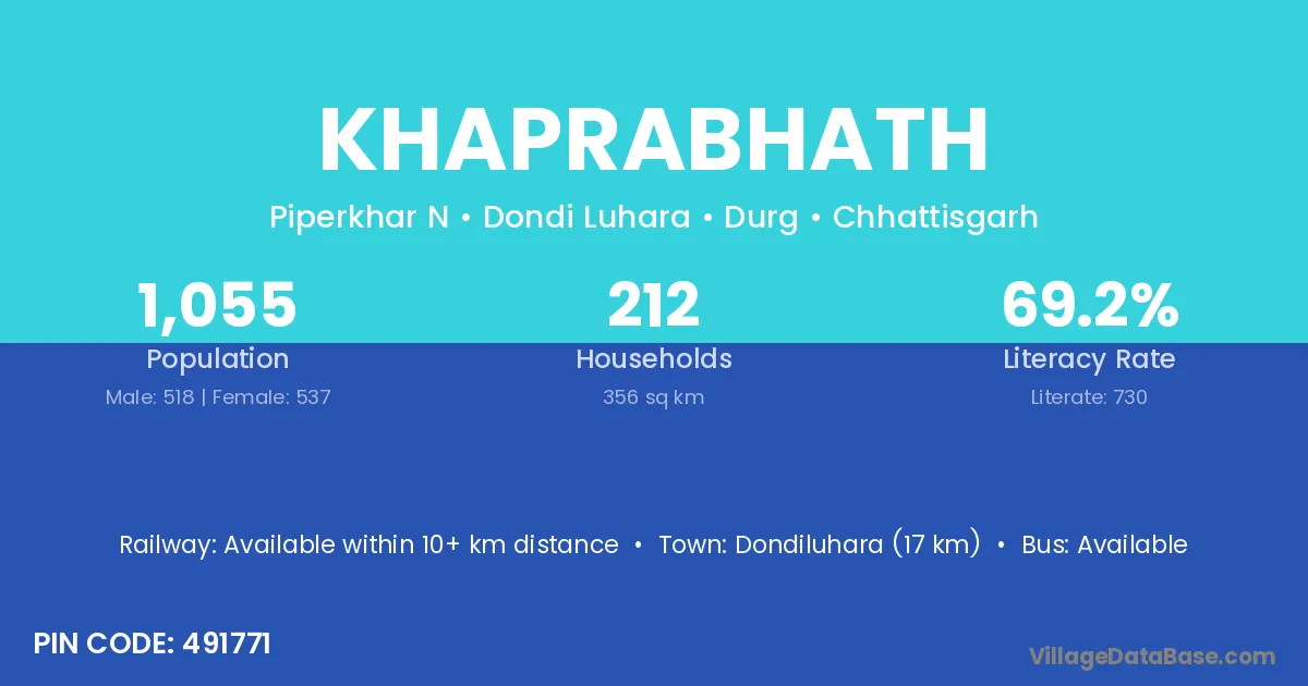 Dondiluhara (17 km) is the nearest town to Khaprabhath village for major economic activities and is located approximately 17 km away.