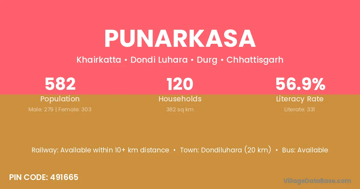 Punarkasa village has a total population of 582 people, of which 279 are males and 303 are females.