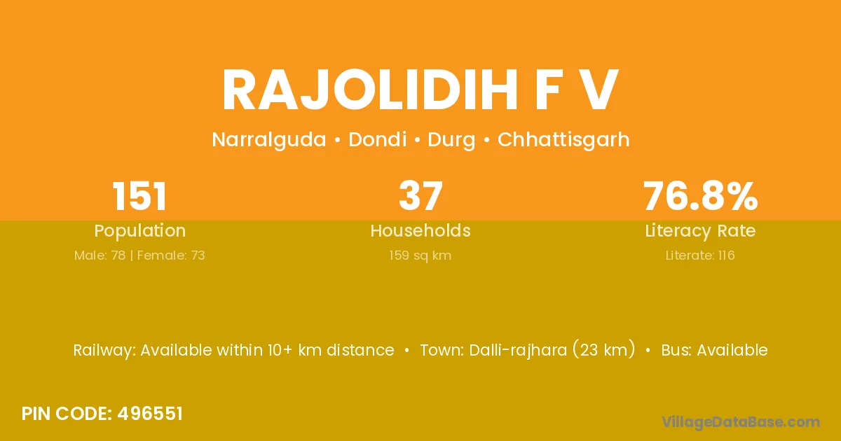 Rajolidih F V village has a total population of 151 people, of which 78 are males and 73 are females.