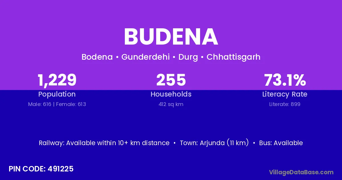 Arjunda (11 km) is the nearest town to Budena village for major economic activities and is located approximately 11 km away.