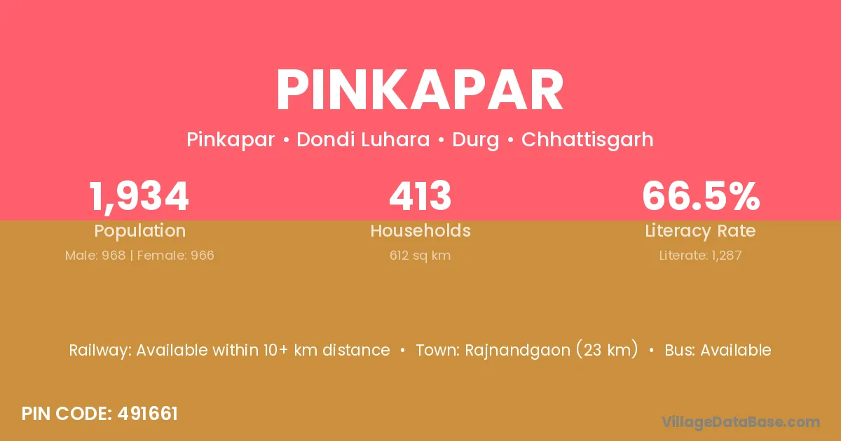 According to Census 2011 information, the village code of Pinkapar village is 493445.