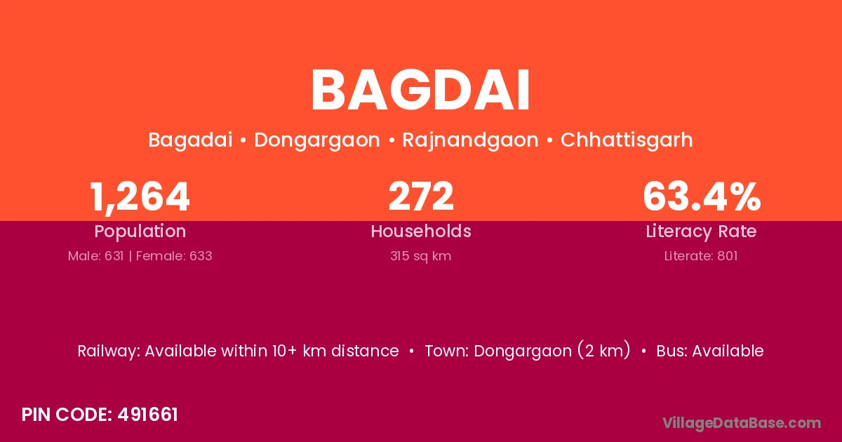 According to Census 2011 information, the village code of Bagdai village is 491227.