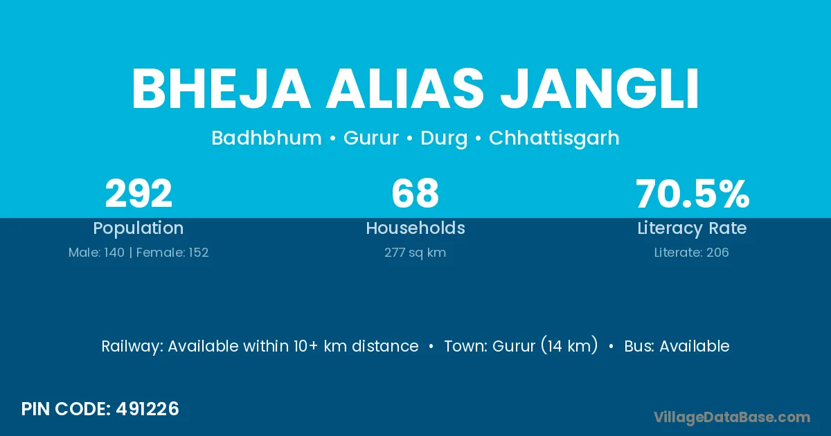 Bheja Alias Jangli village has a total population of 292 people, of which 140 are males and 152 are females.