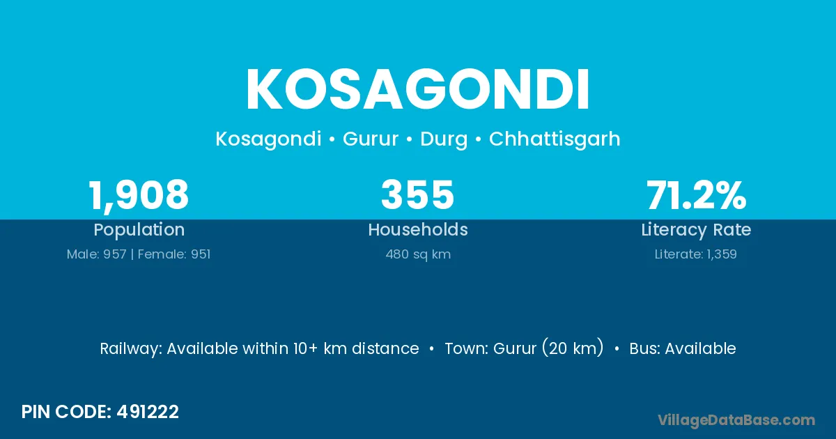 Gurur (20 km) is the nearest town to Kosagondi village for major economic activities and is located approximately 20 km away.