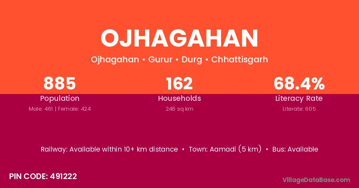 Aamadi (5 km) is the nearest town to Ojhagahan village for major economic activities and is located approximately 5 km away.