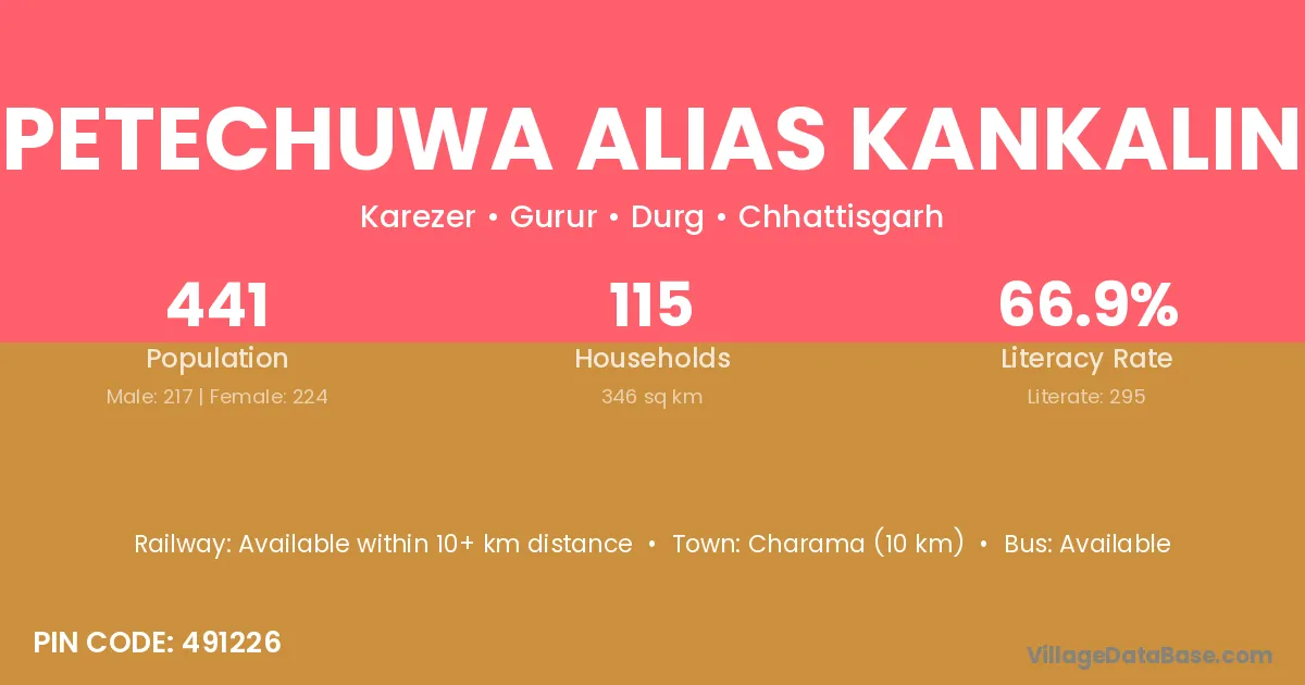 Petechuwa Alias Kankalin village has a total population of 441 people, of which 217 are males and 224 are females.