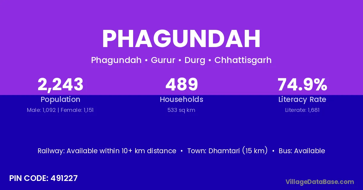 According to Census 2011 information, the village code of Phagundah village is 491227.