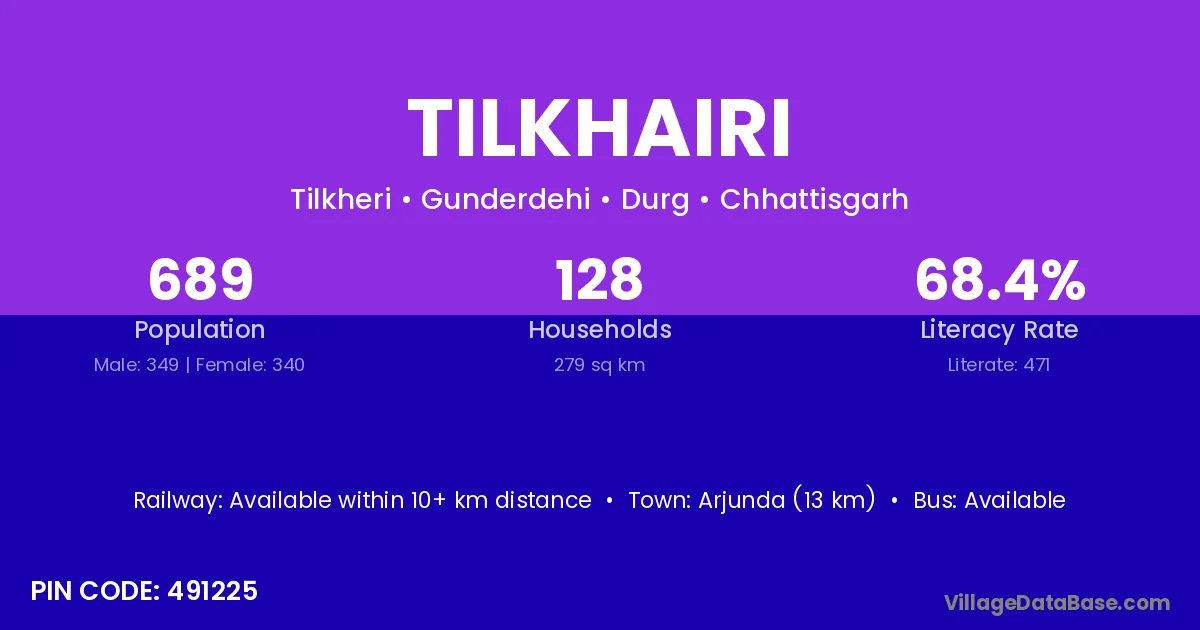 Gurur (20 km) is the nearest town to Tilkhairi village for major economic activities and is located approximately 20 km away.