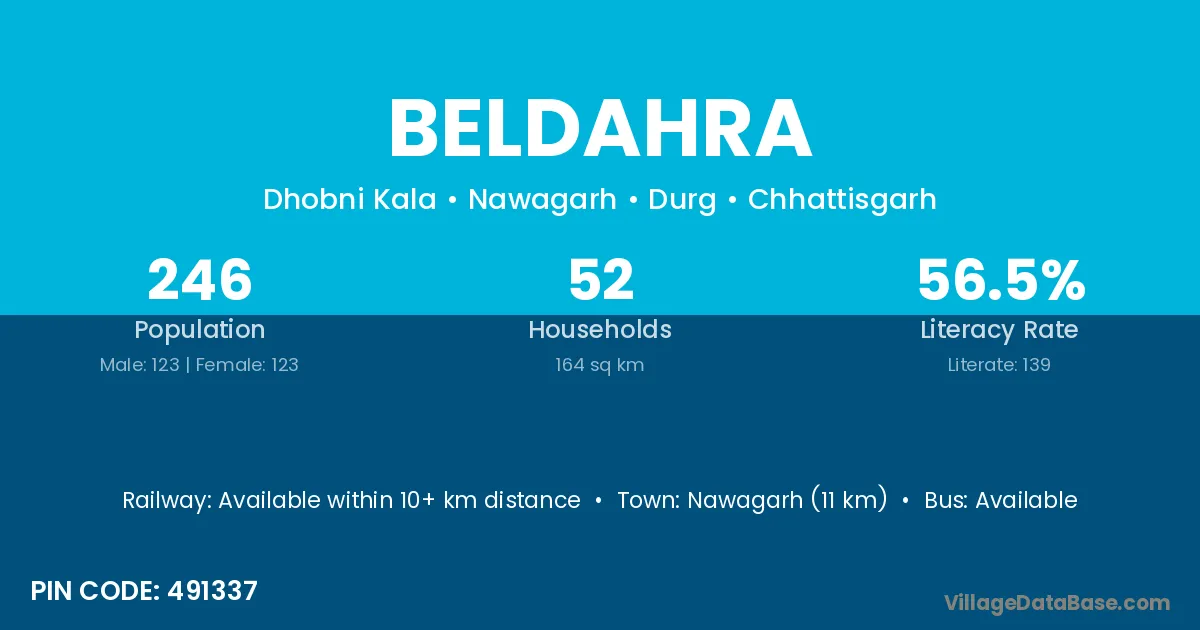 Nawagarh (11 km) is the nearest town to Beldahra village for major economic activities and is located approximately 11 km away.