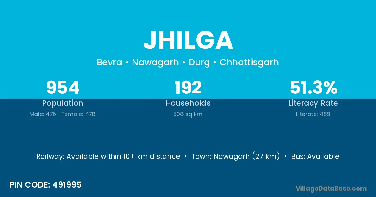 Nawagarh (27 km) is the nearest town to Jhilga village for major economic activities and is located approximately 27 km away.